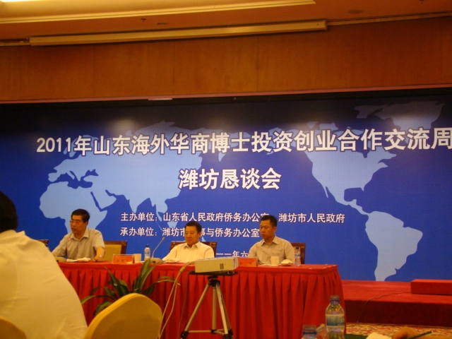2011年6月15日,公司參加2011山東海外華商博士高端產(chǎn)業(yè)懇談會,會上不僅介紹濰坊市好的投資環(huán)境,而且對華商博士高端產(chǎn)業(yè)項目也有詳細(xì)介紹,對雙方對接提供合作平臺。