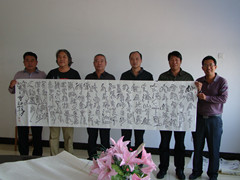 2013年9月28日,雙鉤書法大師劉寶山來司并現場贈送客戶書法作品《沁園春 雪》